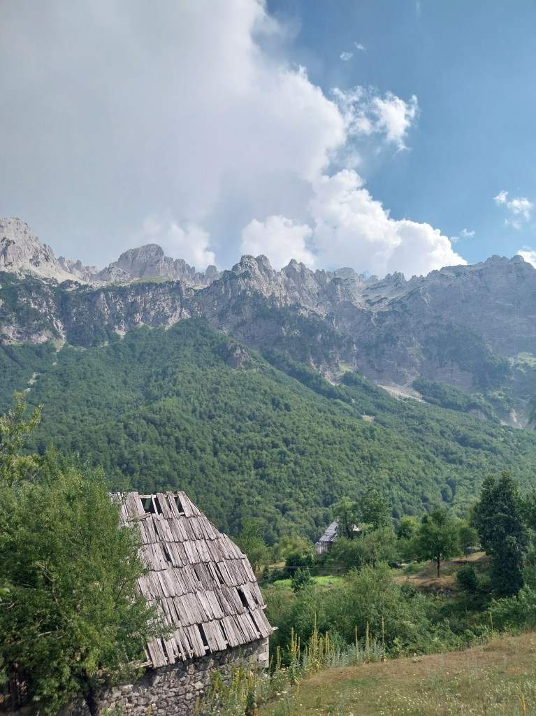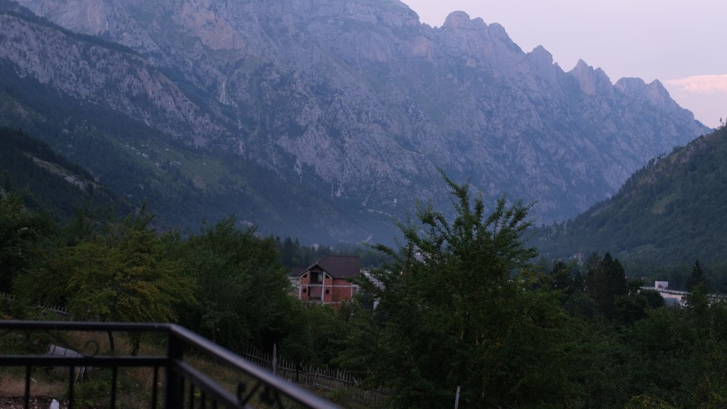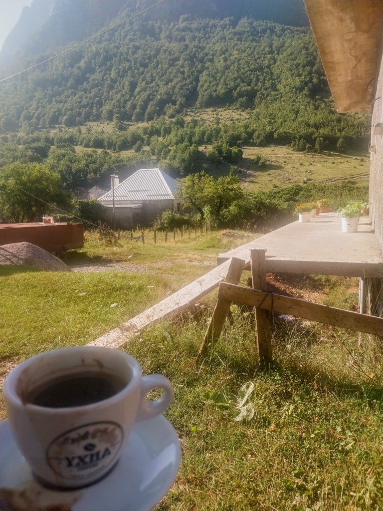 We booked our tickets two days in advance with no issues, and even received email reminders. Our bus collected us outside Hotel Razafa (central and easy to find) around 06:30AM and soon hit the road towards Theth National Park. We stopped at a small, family run cafe in Bogë for a toilet break and to stretch the legs. Don’t expect anything fancy, but classic strong black coffee is available, with a view of the beautiful Albanian mountainous countryside. We had the pleasure of seeing some pigs roaming freely, making their way up the the country road.